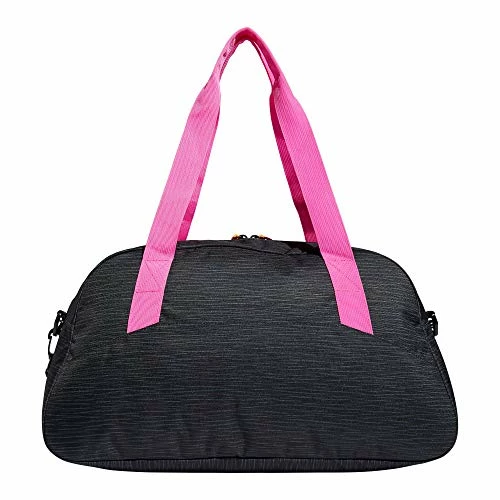 Details: This duffel bag is designed to hold everything you need for the gym or studio. it’s made of durable woven fabric. the adjustable strap allows you to carry it across your body or on your shoulder.