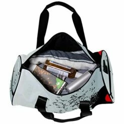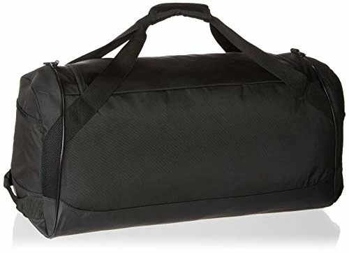 Details: Keep gear organized and separated with this large duffel bag. it’s made of durable woven fabric with a water-resistant base. it has a huge main compartment and a ventilated side pocket for wet or muddy shoes. a padded shoulder strap and padded handles make for comfortable carrying.