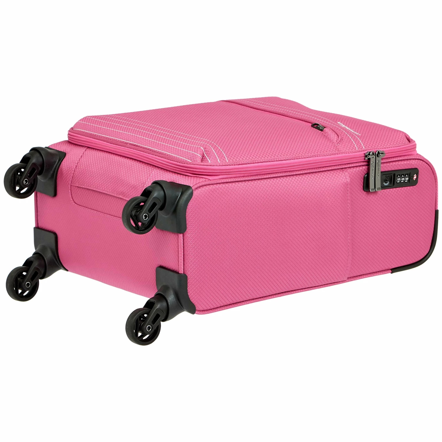 - Lightweight rolling luggage case with softside exterior