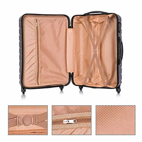 Details: The 4 piece luggage sets include one 18 inch suitcase, one 20 inch suitcase, one 24inch suitcase and one 28 inch suitcase, which allows you to assign all yourclothes in perfect order for your own needs and preferences. The firm codedlock guarantees the security of your luggage. No matter the multi-directionalwheels, or the ergonomically designed telescoping handles will add muchconvenience to your trip. The spacious main compartment and zippered pockets keepyour travel essentials, your small valuables well organized. It is perfect forany trip you may have.Specifications: