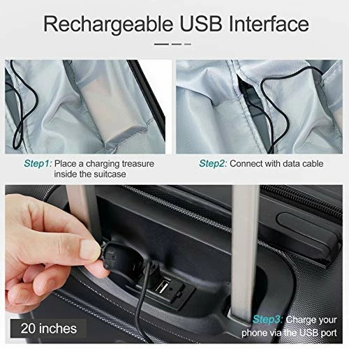 - ✈【Laptop Pocket and USB Interface】 Carry-on 20-inch suitcase is designed with a pocket for storing the computer and a small pocket to organize items, and it has a charging port and usb cable, which is very convenient and fast when storing and removing them when you travel.