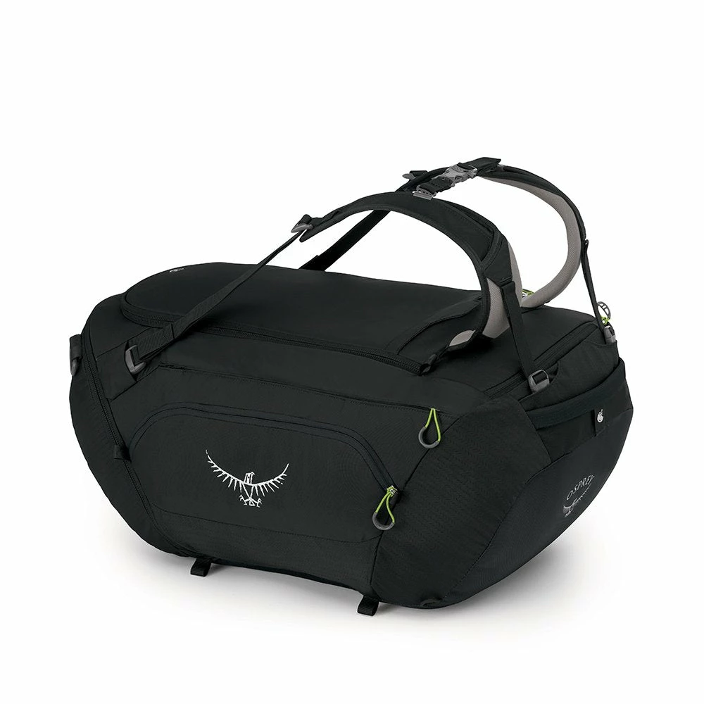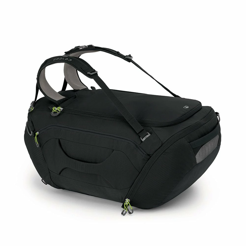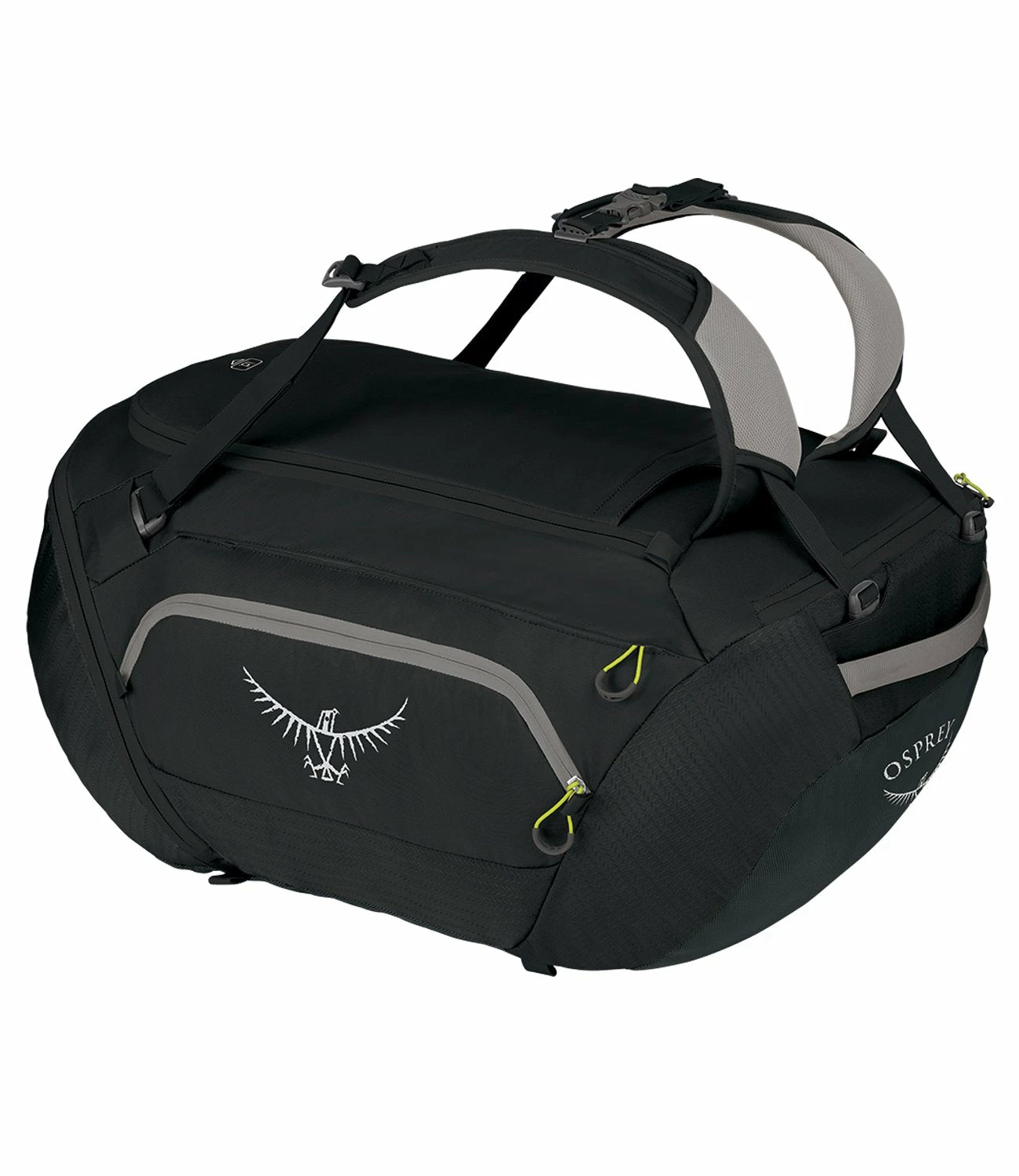 Details: A place for everything, and everything in its place. The osprey big kit duffel is ready for big trips, faraway destinations and lots of gear. The main compartment has an internal compression strap to ensure your gear is secure come travel time. It also features multiple carry options with the stowaway contoured harness and yoke along with four burly grab handles. With a weather protected main compartment and overlapping rain flaps this Osprey Packs duffel is ready for any adventure.