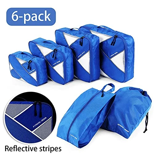 Details: P.travel 6pcs Packing Cubes Travel Luggage Packing Organizers(Blue)