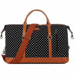 BAOSHA Oversized Canvas PU Leather Travel Tote Duffel Bag Weekender Overnight Bag (Black)