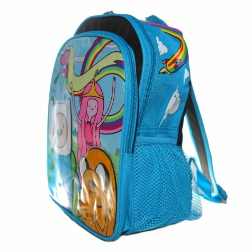Details: This Adventure Time Jake, Finn and Princess Bubblegum Small Backpack Bag is a officially licensed cool backpack for back to school; The adjustable straps can be adjusted for a personalized fit, and the padded shoulder straps make the bag comfortable to wear; This bag has two main compartments with zipper closure for easy and secure access to your belongings and a side mesh pocket and pouch pocket keep for small necessities organized; Approximately dimensions: 12 in(H) x 10 in(W) x 3 in(D)