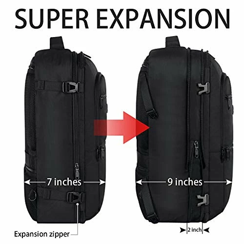- ✈Expandable & Large Capacity: This large travel backpack with an expandable design gives you a greater capacity of up to 40L. Unzipping to get larger storage space, you can easily fit 3-7days travel gears. The carry on backpack meets the maximum size allowed by IATA flights, can be fitted overhead and under-seat, is ideal for a weekend trip, business trip. The TSA 180 degree zipper closure helps you go through the security check quickly
