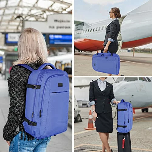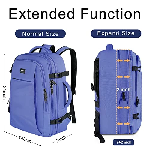 - ✈【EXPANDABLE & LARGE CAPACITY】: Normal size: 21*14*7 inch, After expanding: 21*14*9 inch. The extra large travel backpack with expandable feature offers you more packing capacity up to 50L. Unzipping to get larger storage space, can hold 3-7 days travel gear. The TSA approved carry on backpack comes with 180° zipper closure helps you go through the security check quickly. The luggage backpack for travel meets most airline carry-on requirement also fits in the overhead compartment and under seat