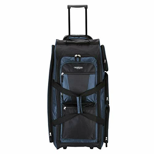 Details: Travelers Club expedition 30″ Rolling duffel is constructed from 600D. Polyester. It has large U-shape opening and extra large zippered accessory pockets.